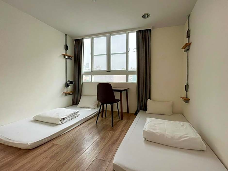 *Bunk beds ( You’ll have girls’ roommates.) *Need to take off covers of quit, bed and pillow after you check out. *Room has no towels, toothbrush, table and TV. ( Hostel has self-service store, you can rent towels and buy toothbrush by yourself) *Electric locker. *No elevator for customers (Only have elevator for carrying on luggage) *Check in : 15:00 - 18:00 / Check out : before 11:00 *If you check out late, hostel would charge you. *Non Smoking. (Once you smoke, we’d charge you TWD$3600.) *No Parking. *There is no TV or work desk or chair in the room. Guests are required to bring their own towels and toiletries or purchase them at the on-site shop. Public areas: Basement (TV, sofa, table games, books), 5th floor outdoor balcony (washing and drying machines: TWD$105 coins/time) and shared kitchen (tableware, tables and chairs, refrigerator, electric cooker, microwave oven) ) *If you will check in after 18:00, please tell us and leave your Taiwanese phone number or email, we’d tell you how to check in by yourself.